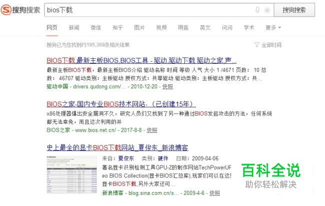 打开搜狗搜索,输入bios下载关键字。