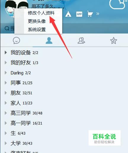 修改QQ资料很简单,登录QQ之后,右击我们的QQ头像,然后选择修改个人资料。