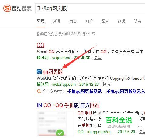 搜狗搜索QQ网页版,然后点击QQ网页版的登录链接。