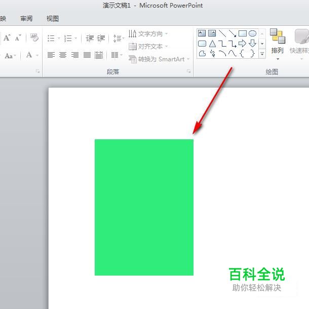 如图,在PPT文稿中有一张纯绿色的矩形图片,接着我们开始对它进行裁剪。