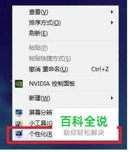 鼠标在桌面上点击右键,选择“个性化”进入设置菜单。