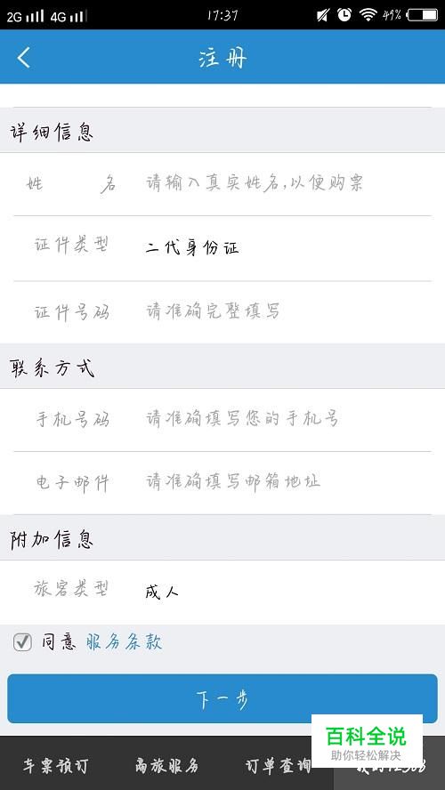 准确的填入个人信息,然后点击“下一步”,如图所示。