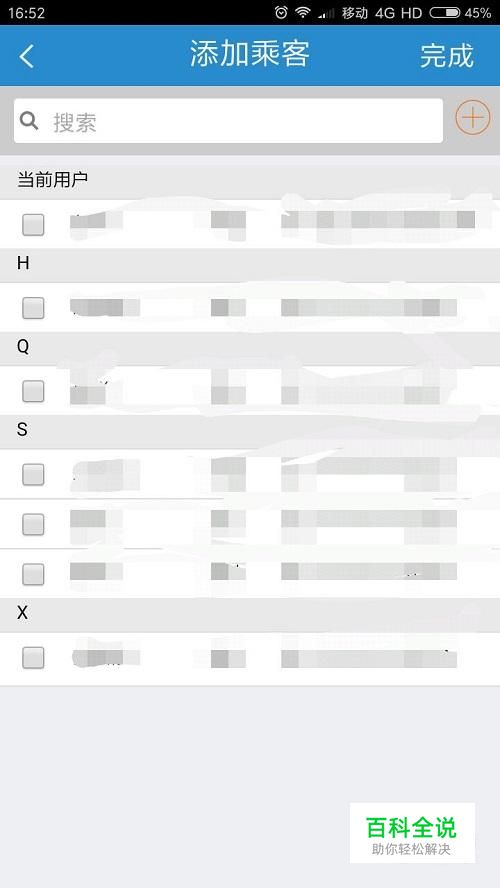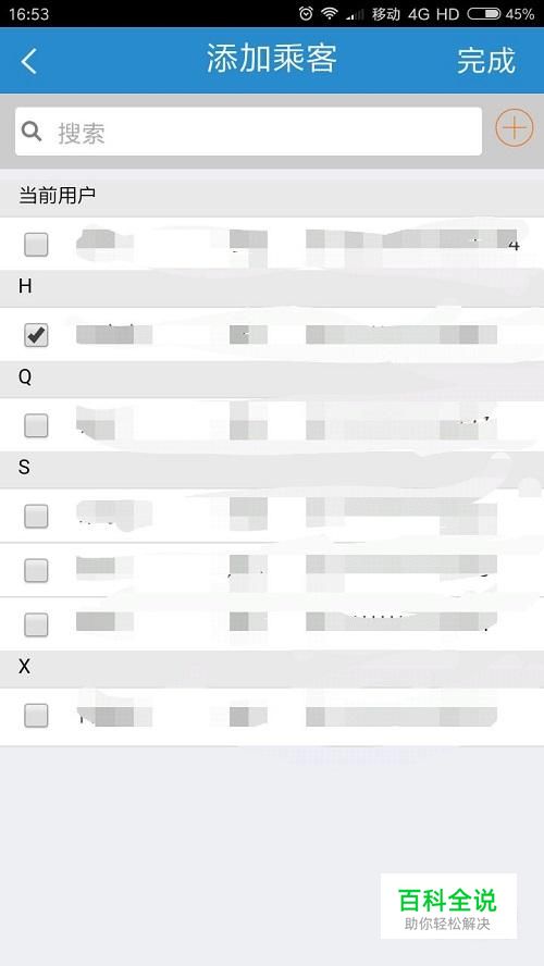 添加完乘客信息后,点击乘客姓名前的方框打钩,然后点击“完成”,如图所示。