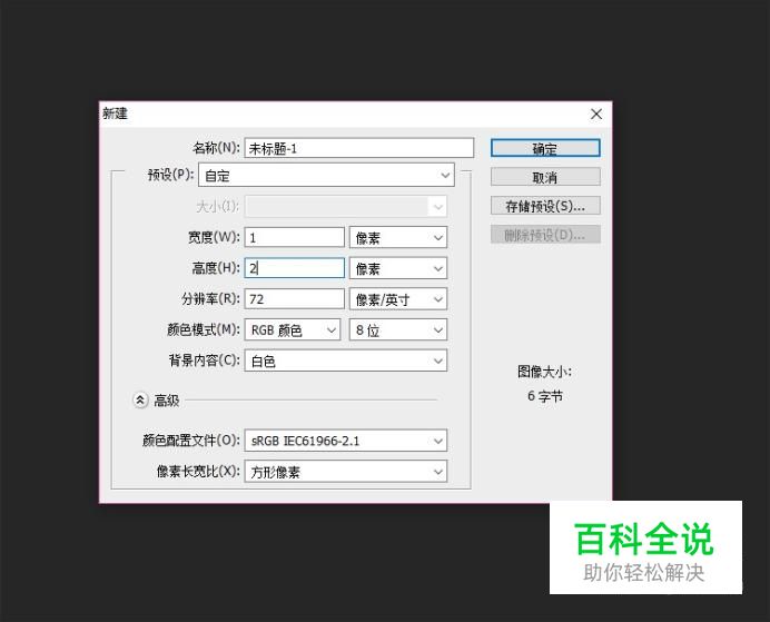 新建一块画布,画布的宽度设置为1,高度设置为2,其他保持默认。
