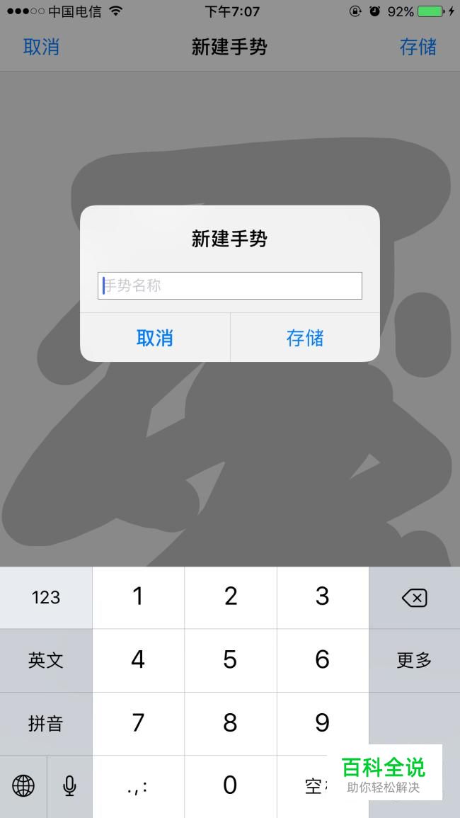 返回第六步,我们点击-创建新手势,这个是自己设计的手势操作,类似四个手指,选择几个手指后,你用一个手指点击就相当于几个手指同时点击,基本上没啥用,切水果游戏能用的到吧!小伙伴们赶快试试吧!