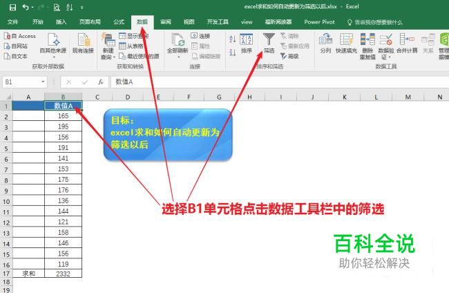 选择B1单元格点击数据工具栏中的筛选