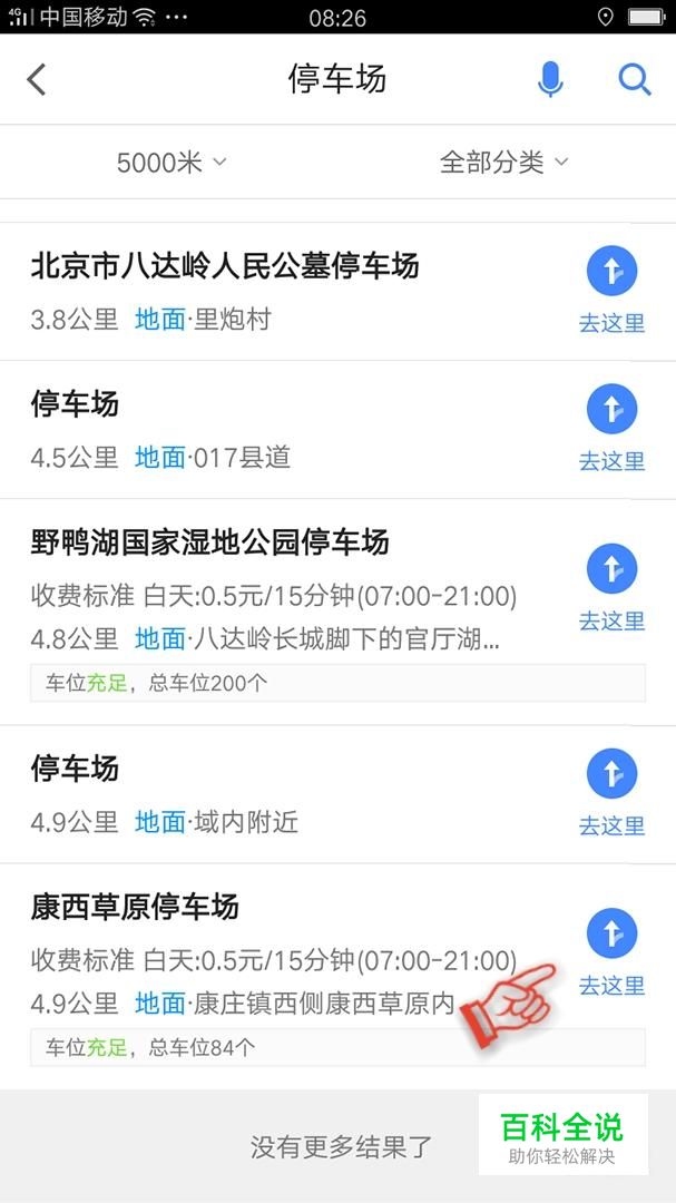 我们还可以在下面的选项卡中找到需要的停车场,操作比较方便一些,如图所示。