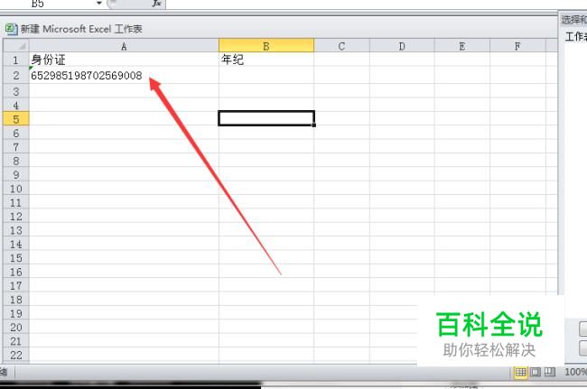 在电脑上打开excel表格。在出现的界面输入自己的身份证号码。小编这里用别的数字代替