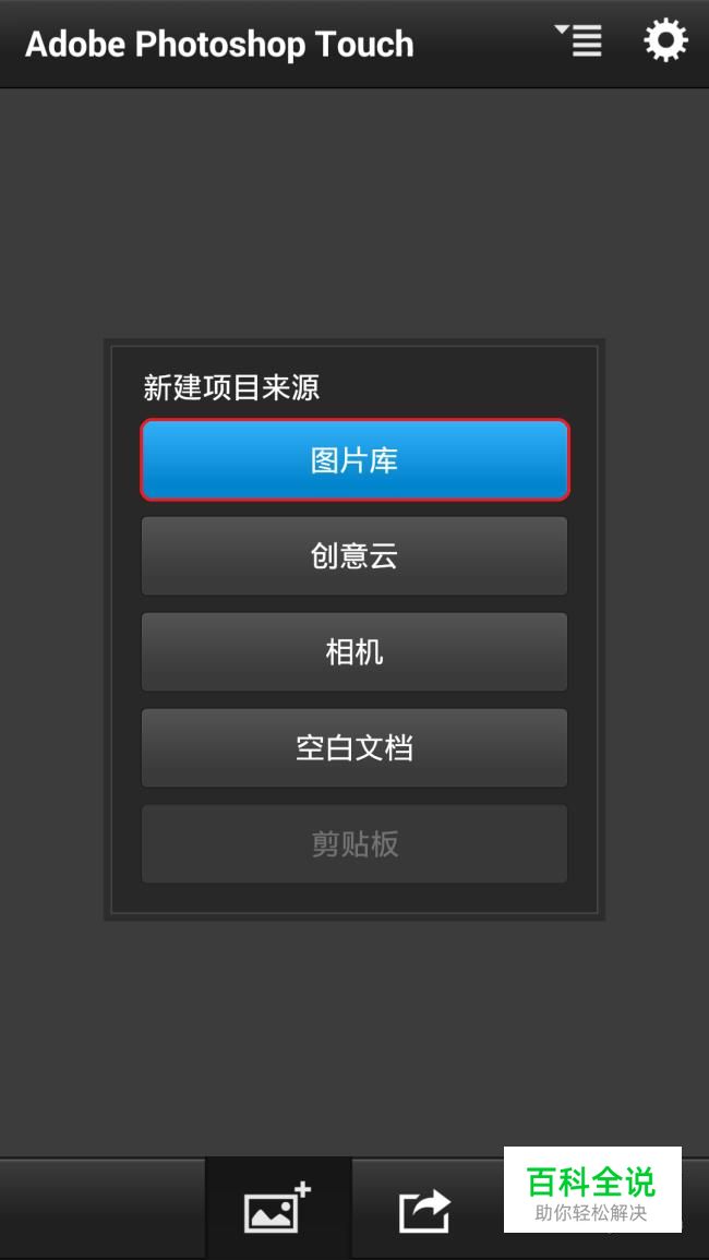 进入程序以后,我们选择选择要修改的图片来源,这里我们选择【图片库】,也就是手机相册。