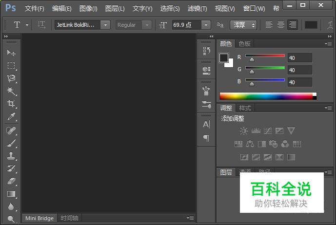 在桌面上双击ps的快捷图标,打开ps这款软件,进入ps的操作界面,如图所示: