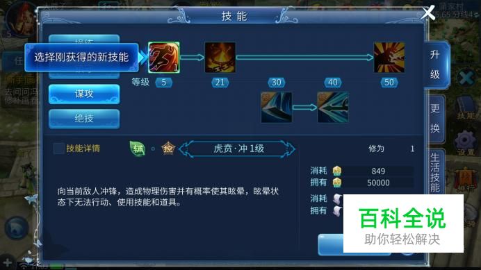 当然技能是需要升级的,升级后会提升属性,点击“升级”即可进行升级。