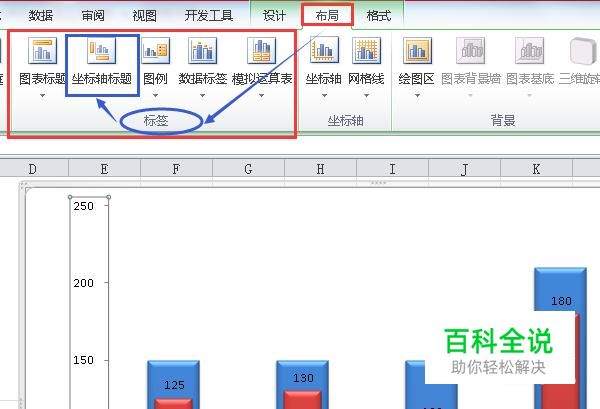 方法一:通过“坐标轴标题”添加 首先,选中图表区需添加数量单位的坐标轴,点击菜单栏中“布局”按钮 。