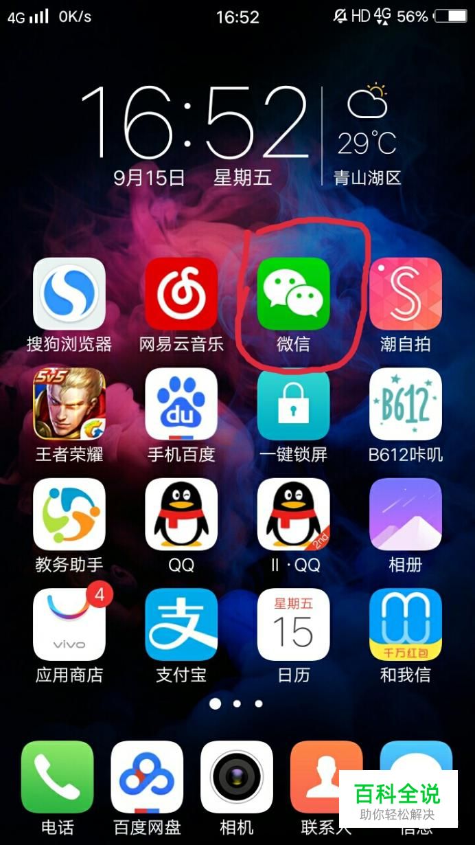 首先在手机上找到微信这个软件,然后打开。