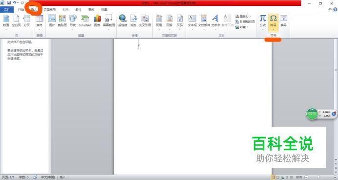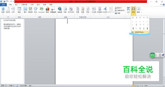 第一种可以借助办公软件中的自带符号输入。 打开Microsoft Word,点击插入。在选项卡中找到“符号”。