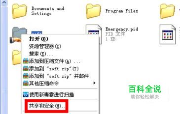 选择我们要设置的文件,点击右键, 弹出“共享和安全”,点击进入。