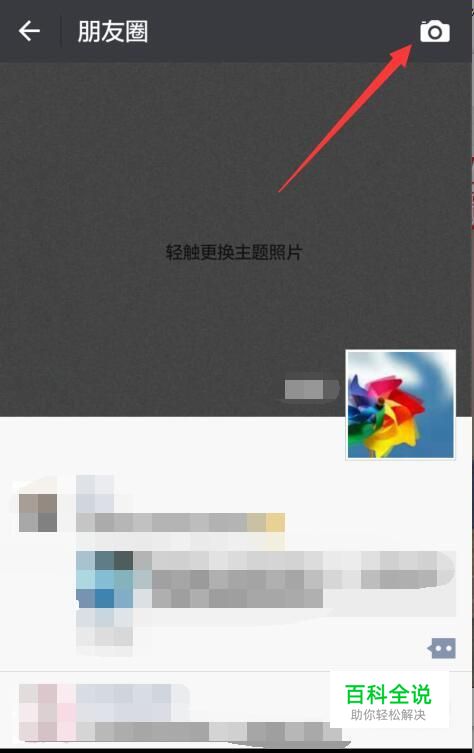 单击之后会进入到朋友圈面板,在这里就可以看到自己的好友发的朋友圈动态了。此时我们可以看到在面板的右上角会有一个类似相机的图标,此时我们按住按图标不动。
