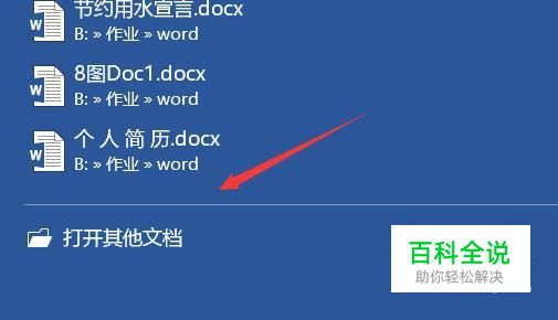 双击打开word软件,在打开页面,单击打开其他文档,弹出打开页面。