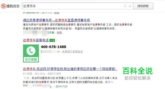打开搜狗搜索,输入法律快车关键字进行搜索。