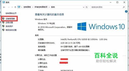 在“我的电脑”点击右键属性,然后打开“设备管理器”;