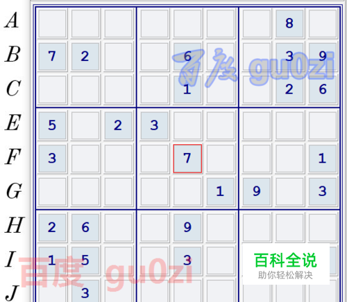 接着从相邻的宫中找,得到J6是6,同上一步一样的道理,推出 G2是7,