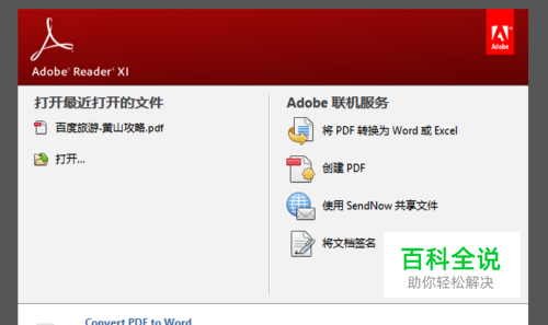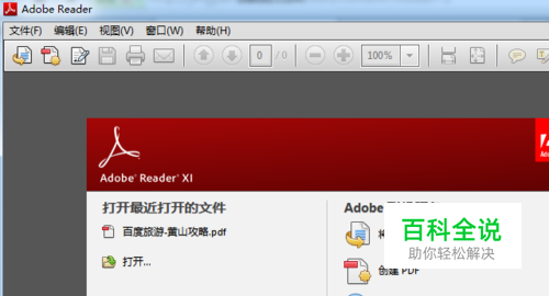 在电脑中使用软件管家或者搜索引擎搜索“Adobe Reader”软件,下载该软件并完成在电脑中的安装操作,安装完成后启动Adobe Reader。