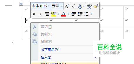 如果只是想删除word2007表格的某个行或者列、单元格,可以在word2007的表格中点击鼠标右键,再用左键点击弹出菜单中的删除单元格。