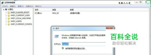 在【开始】→【运行】中输入: regedit 按回车键之后,打开注册表编辑器。