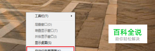 第一步右键桌面任务栏,选择“启动任务管理器”,如下图所示: