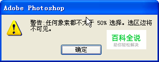 如果你的选择区域不够大的话,也出现如图的对话框,提示选区将不可见。