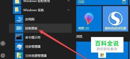 在Windows10桌面,依次点击“开始/Windows系统/控制面板”菜单项。