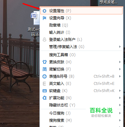 在输入法的最后一个按钮(扳手按钮)上点击右键,选择“设置属性”。