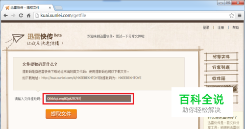 打开提取页面,将文件提取码粘贴进去,点击“提取文件”。