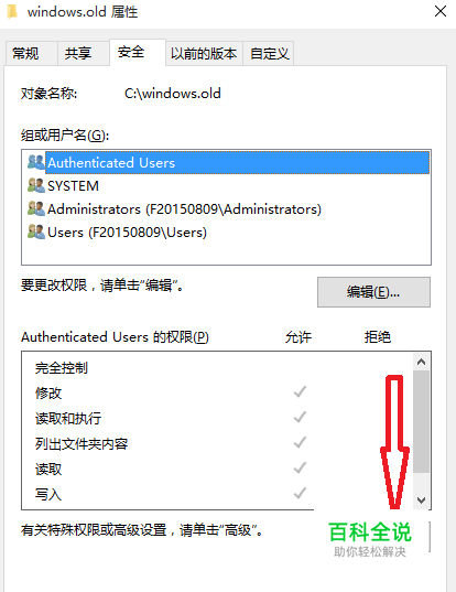 在属性中,选择 安全按钮,然后在点击编辑。