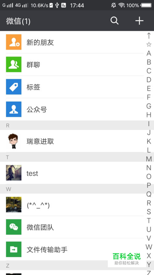 打开“微信”,进入“通讯录”,打开“公众号”
