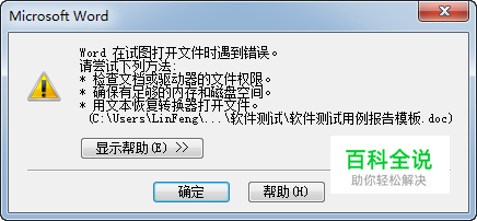 Word 在尝试打开文件时遇到错误