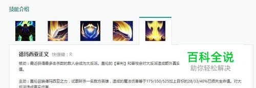 盖伦被动:脱离战斗后回血 盖伦大招:对敌方已经损失的生命值百分比伤害,半血以下释放比较好