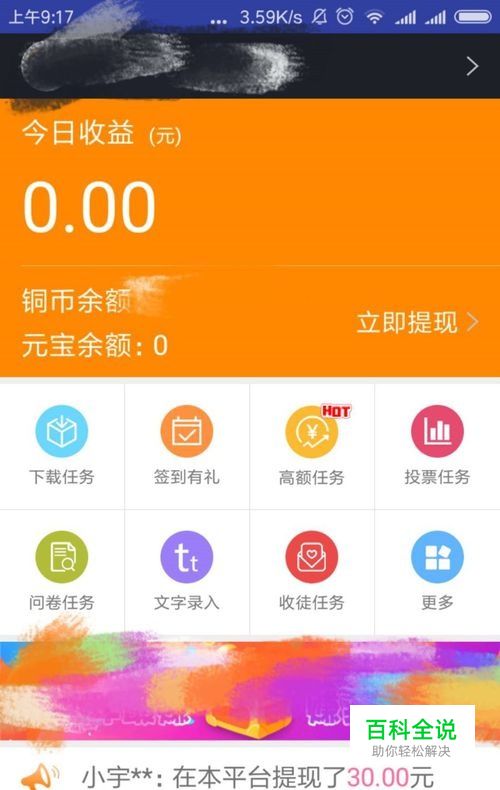 主页——赚钱这里是核心部分,其他的选项都是起辅助作用。有8个选项,前后两排。分别是:下载任务、签到有礼、高额任务、投票任务、问卷任务、文字录入、收徒任务、更多。都是这个主页里面的。但是一般赚钱任务都是选择里面的投票、录入。同时下载任务里面都可以获得一些铜币和元宝。