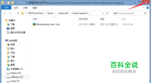 然后我们找到刚才下载的材质包,因为我打开的是1.8.8的就是1.8版本的我的世界,所以我们复制那个后面是1.8×的压缩包。