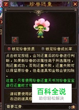 用还童天书,二代的和变异的不能洗.变异的和2代的成长、资质已经固定了。不同的还童天书,还童下来的效果不一样。还童天书可以在商城买。
