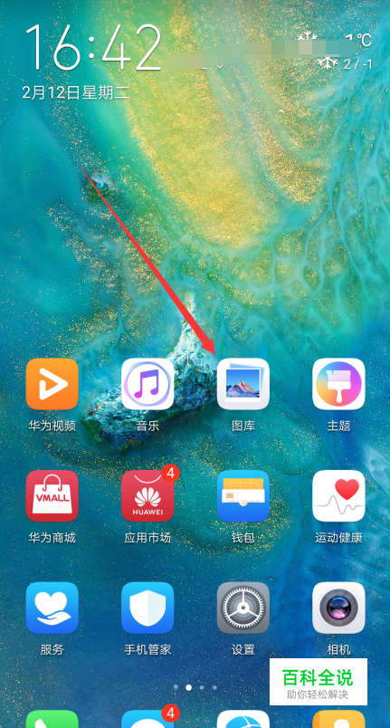 打开华为mate20 pro手机后,直接点击桌面上的【图库】,如下图所示。