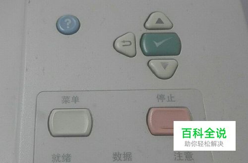 在进行设置之前我们应该将HP5200打印机调回首页,这里可以直接按返回键(在“√”左边),首页界面只显示“ready”(中文意思为“就绪”)。