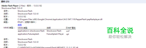 禁用掉一个flash插件 在地址栏中输入chrome://plugins,找到Adobe Flash Player这个插件,能看到旁边括号中写的(2files),点击右边的详细信息,把其中的一个禁用掉,只留一个flash插件,建议禁用chrome自带的flash插件。