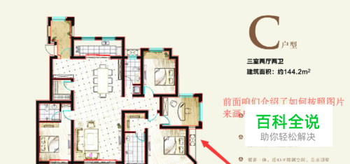 首先先确定自己希望放大(缩小)的大小,比如下图要把户型图放大到黄色框的大小