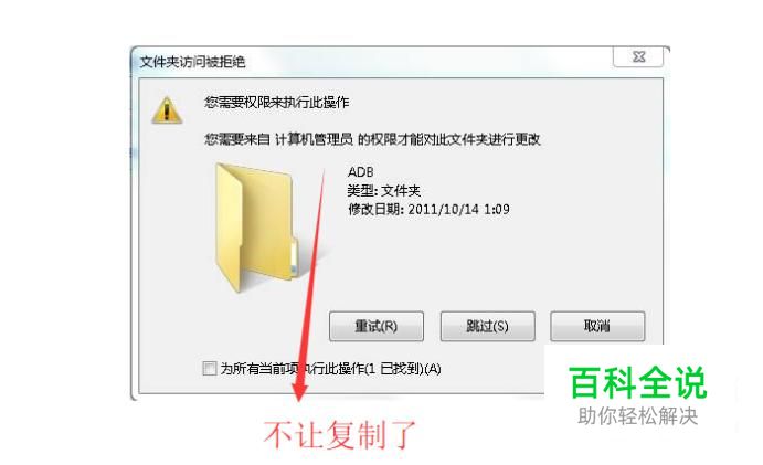 接着我们回到电脑中随便找一个盘符下的文件拷贝到移动U盘或者硬盘里面,你会发现不让拷贝了,如下图所示