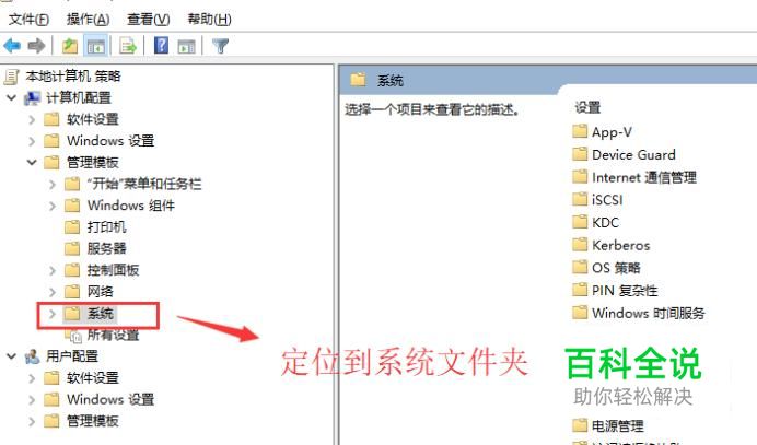 进入注册表界面以后,定位到计算机配置下的管理模板,然后双击打开系统文件夹,如下图所示