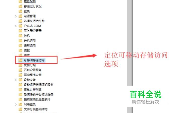 接下来在系统文件夹下面找到可移动存储访问的选项,点击此选项,如下图所示