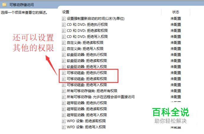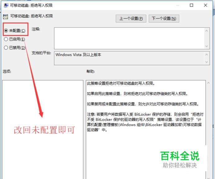 如果想取消可移动磁盘拒绝写入权限的设置,我们只需要在打开设置界面,勾选未配置即可,如下图所示