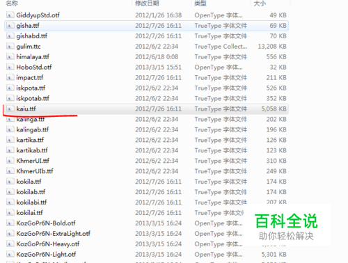 网上有各种各样的字体格式,甚至有一些是花朵什么形式的。所以上网下载.ttf的字体格式包。这里咱们就以楷体为例子