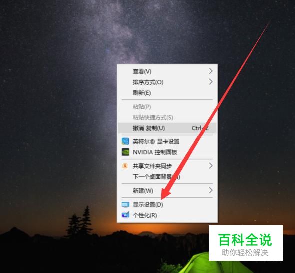 打开电脑,进入电脑主页面,右击一下鼠标,选择“显示设置”,如图所示。