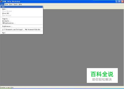 打开 HTML Help Workshop,选择 File(文件)菜单下的 New(新建)命令。